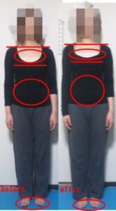 K様は元々細い身体ですが、施術後は姿勢がよくなって、浮腫もとれたのでさらにスマートになりましたね。