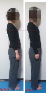 施術前後の右側から撮った写真をくらべてみると、大きな姿勢の変化が見て取れます。