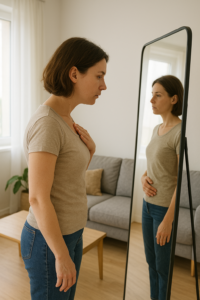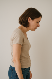慢性的な肩こり。呼吸が浅くて常に疲れている。鏡で見る自分の姿勢が嫌で、写真に写るのも避けたくなる。服を着た時のシルエットが気になる。