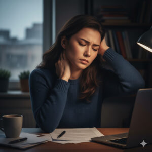 長時間のデスクワーク、スマートフォンの使用、胸の筋肉の硬直と背中の筋力低下、日常生活の悪習慣、ストレスなど、複数の要因が複合的に作用して巻き肩は形成されます。