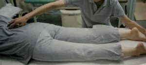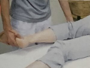4.うつ伏せになって頂いて、背骨と骨盤と足首の調整をしていきます。