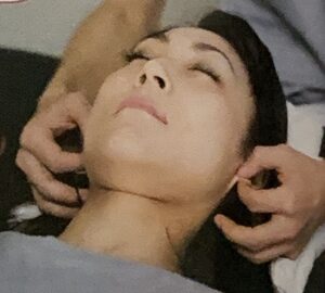 5.もう一度、仰向けになって頂き、顎関節の調整をしていきます。
