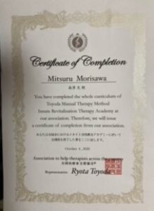2001年より、筋・筋膜研究会にて筋・筋膜や骨の繋がりを研究し”ひとつながりの身体”を学び症状の原因をつきとめ施術する筋・筋膜療法を習得する。