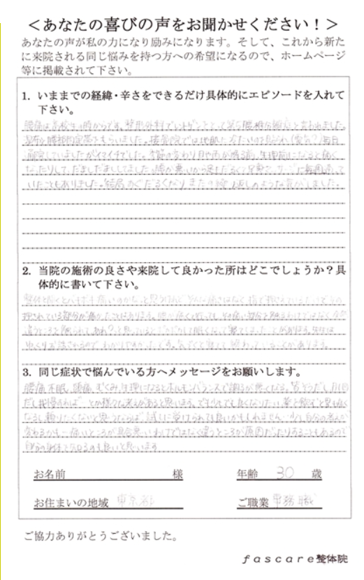 こんなに丁寧な施術を受けたのは、初めてでした!