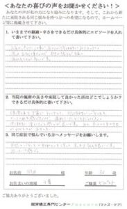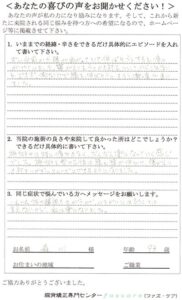 Q.当院の施術のよさや、来院してよかったところはどこでしょうか?