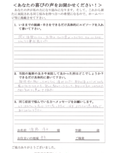 Q.当院の施術のよさや、来院してよかったところはどこでしょうか?