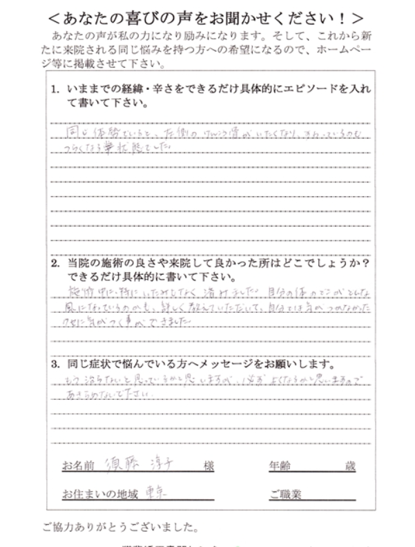 施術をするにつれて、身体が変化していくのが分かり、嬉しかったです。