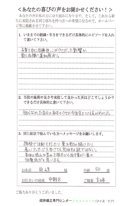 Q.同じ症状で悩んでいる方へメッセージをお願いします。